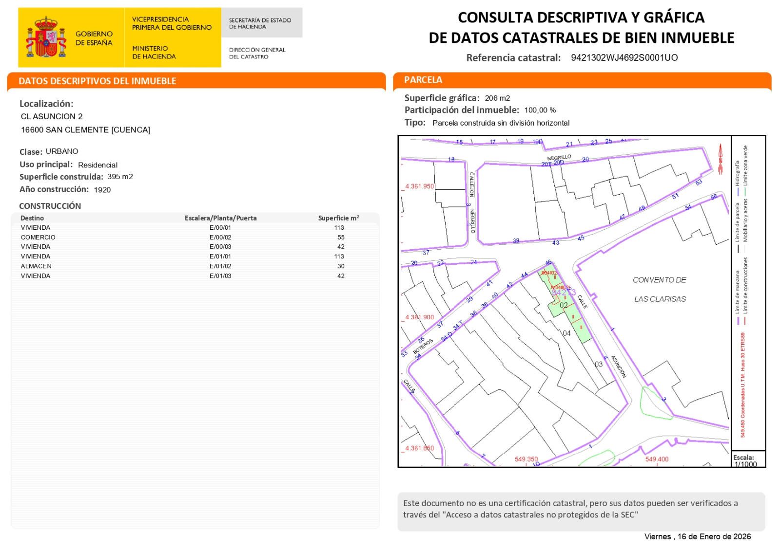Casa para **rehabilitar íntegramente**, situada en **plena zona céntrica de San Clemente**, una ubicación privilegiada con todos los servicios, comercios y vida urbana a pie de calle.