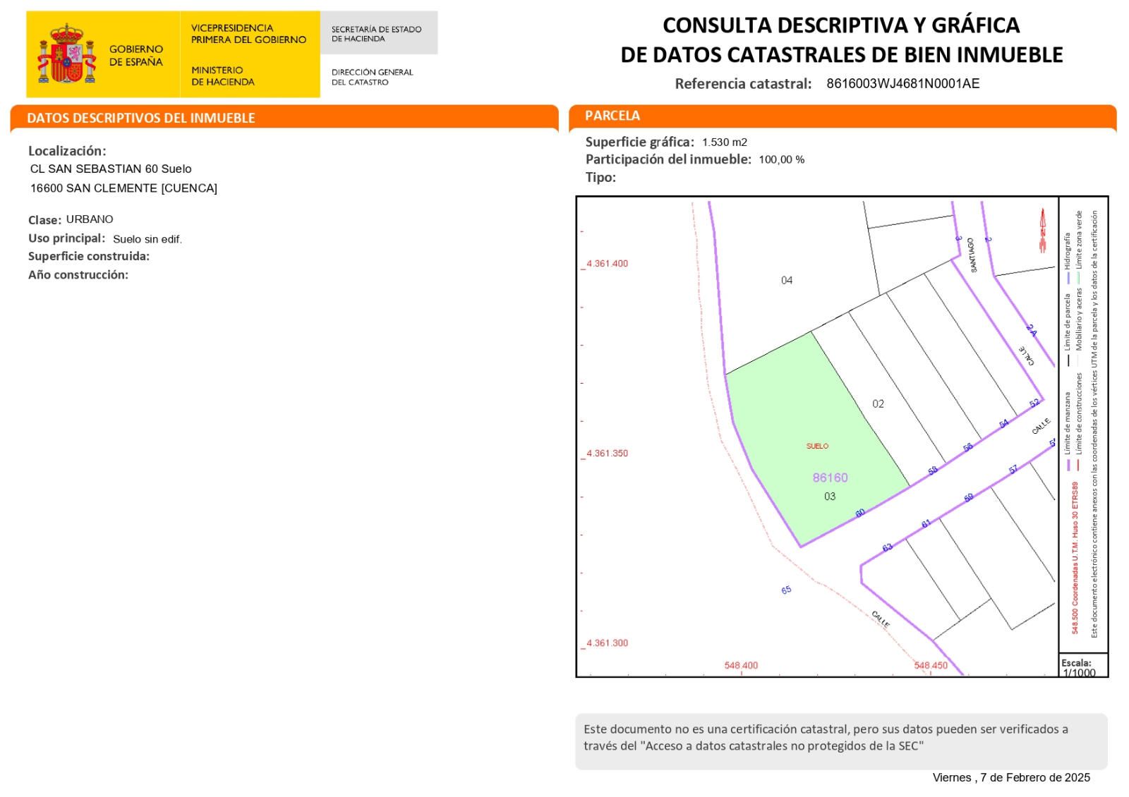 ¡Gran Oportunidad en San Clemente! Amplio solar urbanizable de 1.530 m² listo para desarrollar un proyecto con gran potencial. Disfruta de un cómodo acceso asfaltado, alumbrado público en la zona y total seguridad gracias a su vallado perimetral. Su excepcional fachada a dos calles de 33 metros de ancho por 50 metros de fondo ofrece una versatilidad única para tu diseño. Ubicado en una zona tranquila de San Clemente con fácil acceso a servicios. ¡No dejes pasar esta oportunidad! Llama ahora para más información o para concertar una visita.