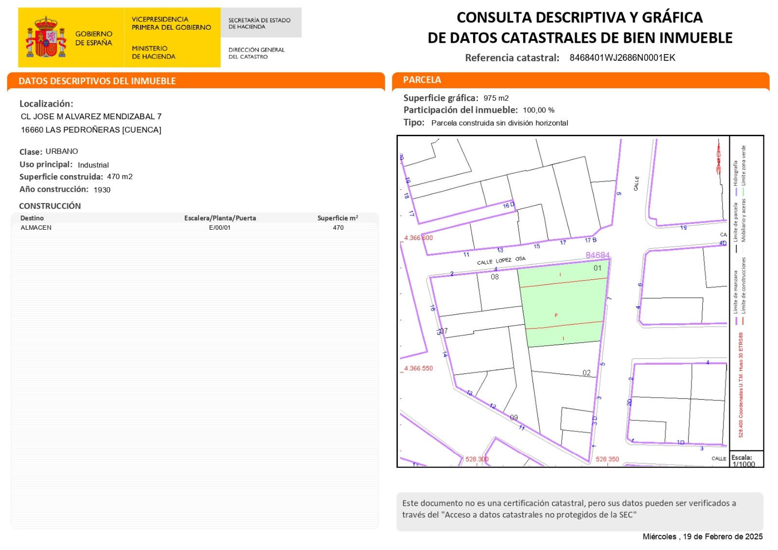 ¿Buscas el lugar perfecto para construir tu futuro o expandir tu negocio? Te presentamos una **parcela única en Las Pedroñeras** que no querrás dejar escapar. Con una superficie de **975 m²**, esta propiedad lo tiene todo para hacer realidad tus proyectos.